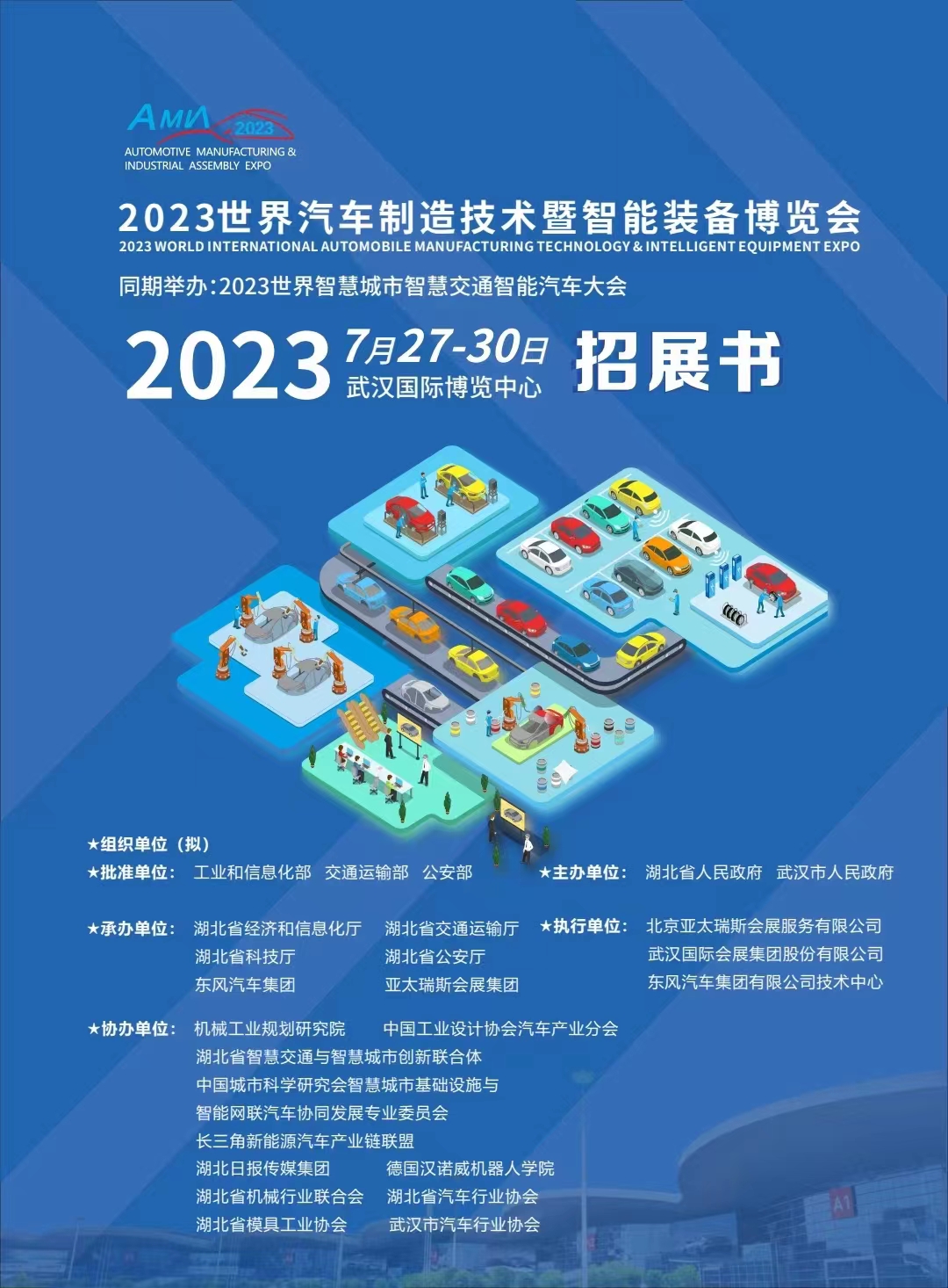 2023武汉国际汽车制造技术暨智能装备博览会预设室内展览面积 6 万平方米,并开创性地首次设立室外展览面积 3 万平方米,按照室内室外相呼应、静态展示动态体验相融合、线上线下相结合推动以汽车制造、汽车零部件、汽车电子、新能源汽车智能网联、线缆线束、汽车焊接、内外饰、轻量化、涂装、汽车模具等领域有关技术的加速融合,与世界各国汽车产业相互赋能、协同发展、形成互融共生、互利共赢的产业发展新格局。本届展会以“集结精良装备 创高品质汽车之源”为主题,汇聚来自世界各地科研及工业领域的专家学者,集中展示汽车工业的最新尖端技术及解决方案,打造中国汽车制造全产业链“一站式”采购平台。