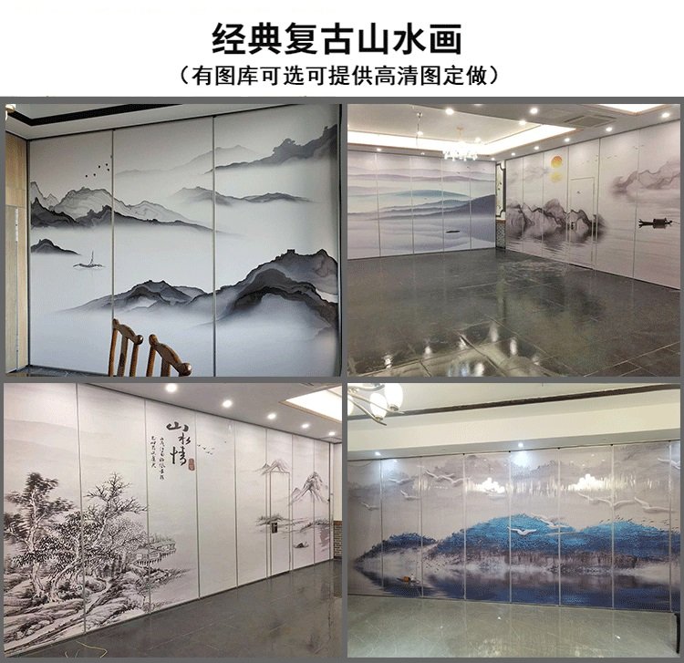 彩绘壁画活动隔断 办公是会议室移动隔断 隔断厂家定制安装